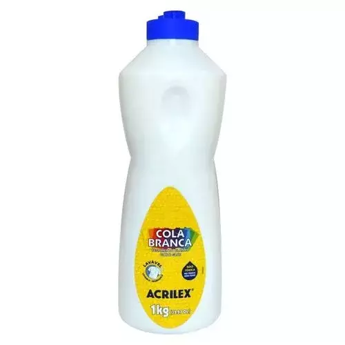 A Cola Branca Acrilex 1 kg possui bico exclusivo que facilita o uso.