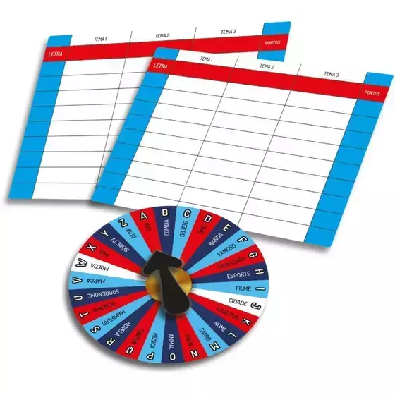 Jogo Stop! Acompanha roleta, cartelas e canetas apagaveis.